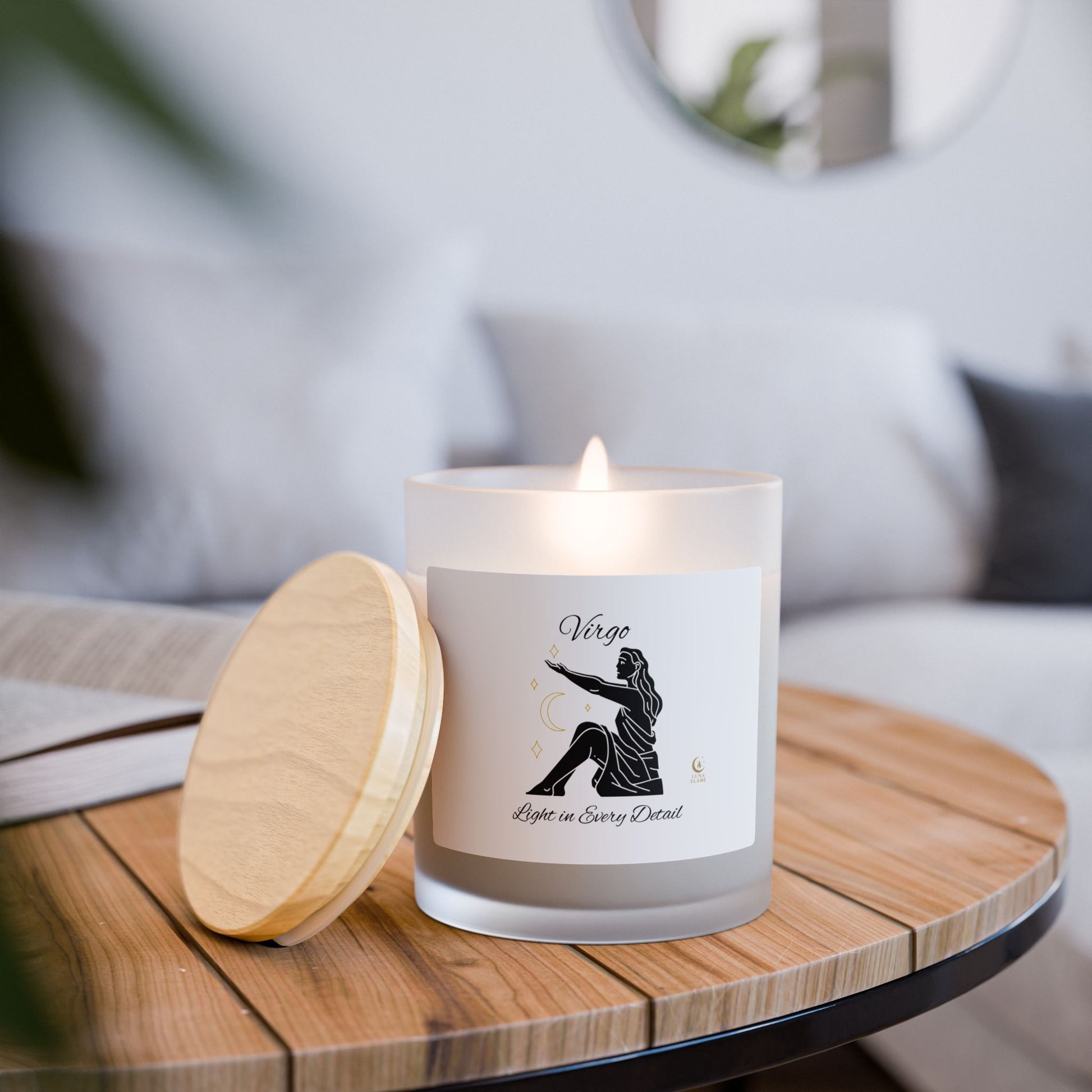 Virgo Zodiac Frosted Glass Candle, 11oz | Astrology Gift, Home Decor